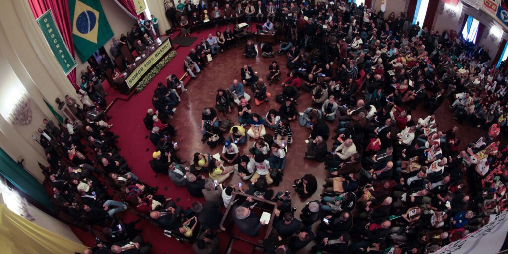 Um manifesto foi lido durante o ato com as críticas às tentativas de intervenção na democracia brasileira. O ato ocorre diante das tarifas impostas aos produtos brasileiros pelo presidente do Estados Unidos, Donald Trump, sob a justificativa de que o ex-presidente Jair Bolsonaro, réu por tentativa de golpe de Estado no Supremo Tribunal Federal (STF), estaria sofrendo perseguição no país.