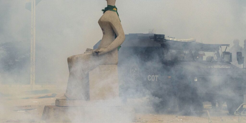 Débora é acusada ainda de vandalizar a estátua que representa a Justiça na Praça dos Três Poderes. A nota emitida considerou “intolerável que profissionais de imprensa sejam caluniados, convertidos em alvo de campanha difamatória e de tentativa de linchamento público por cumprirem aquilo que deles se espera em termos de exercício da profissão”.